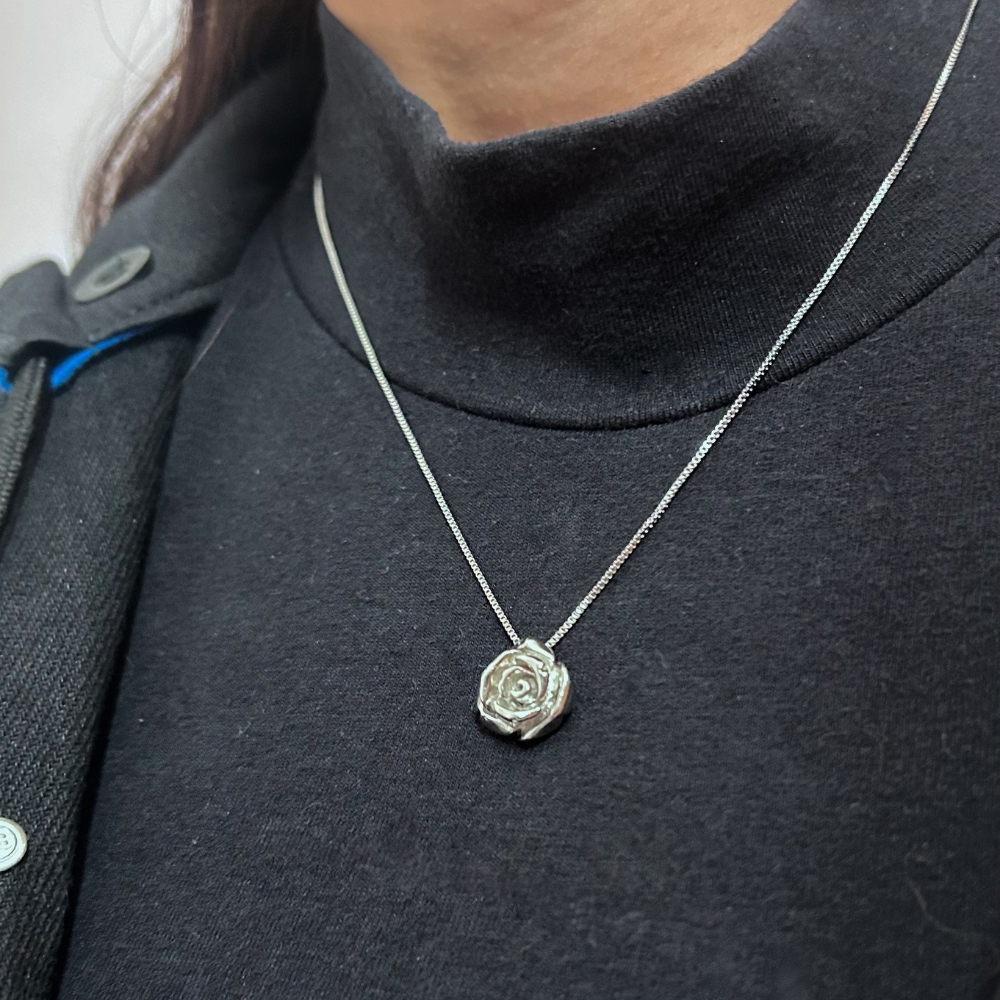 Lindo colar flor de roseira que combina com qualquer look.